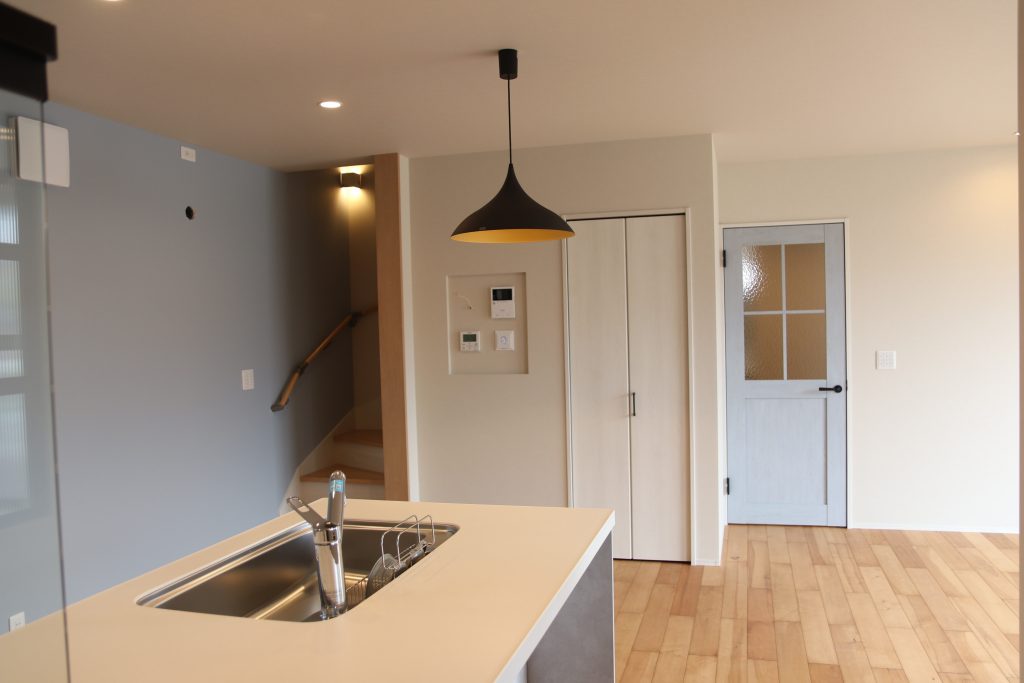 〇家族を見渡せるペニンシュラキッチン。