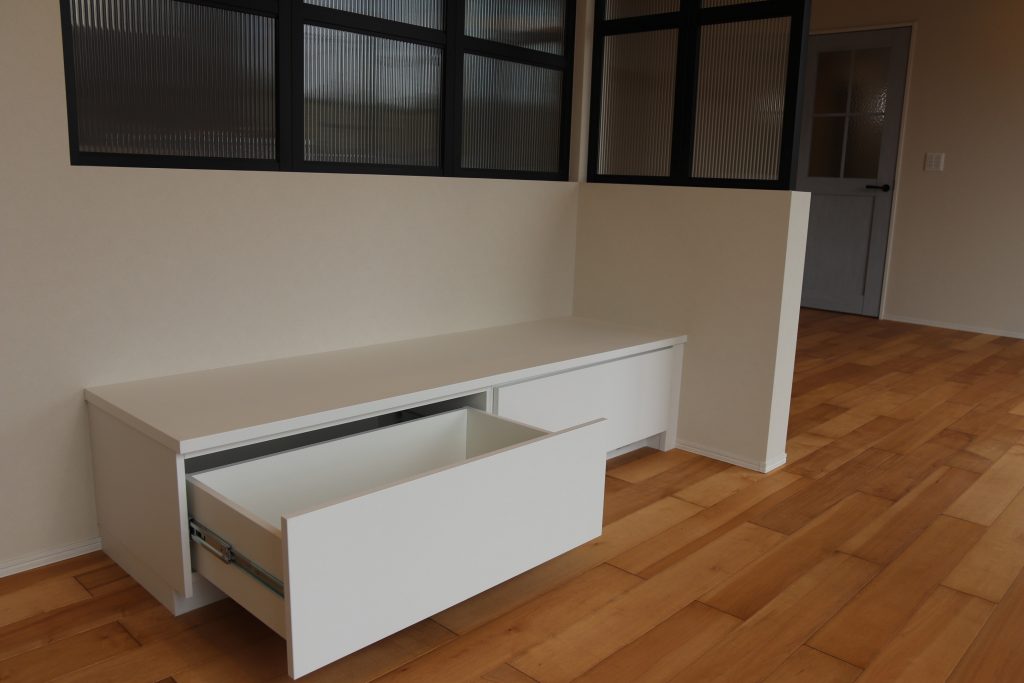 ○収納付きベンチで、家事の合間の休憩時間をまったりと。